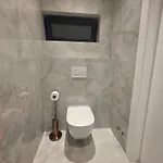 У помешканні в Трогірі є ванна кімната з пральною машиною.